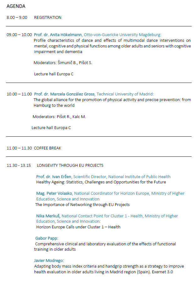 The networking event ‘Longevity: Healthy Aging’ will take place as part of the multi-day international congress ‘Man in Motion (ICHM)’ (28 September 2025 – 1 October 2025, Portorož).